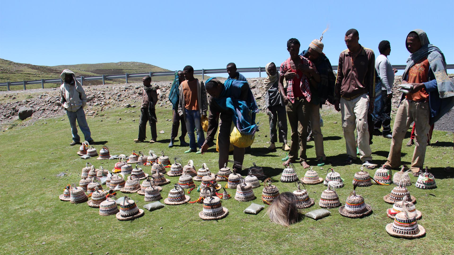 Halten an der Landstrasse und zählen bis 5. Mehr Verkäufer als Touristen.