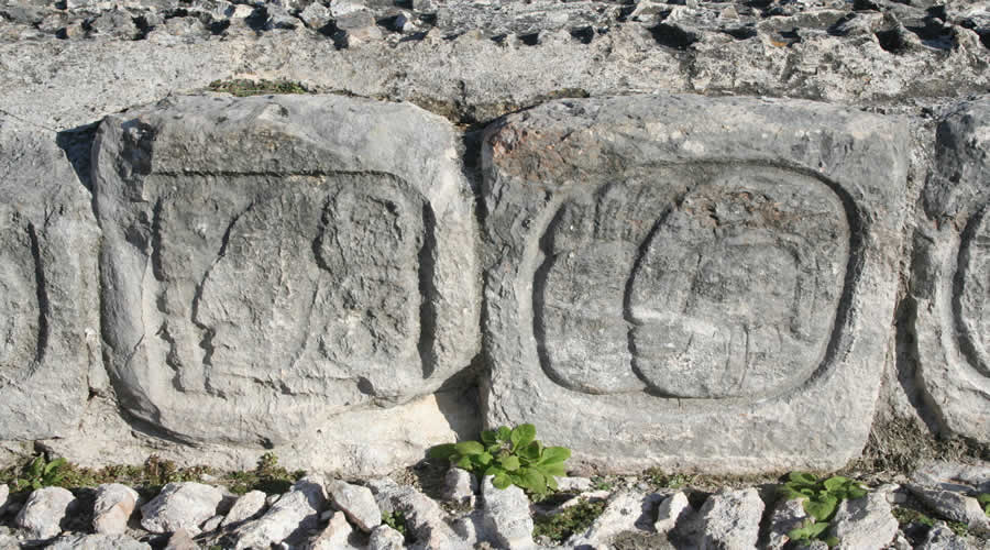 EDZNA - Stufendekoration - The risers of the broad stairway leading to the first floor rooms are decorated with handsome glyphs.